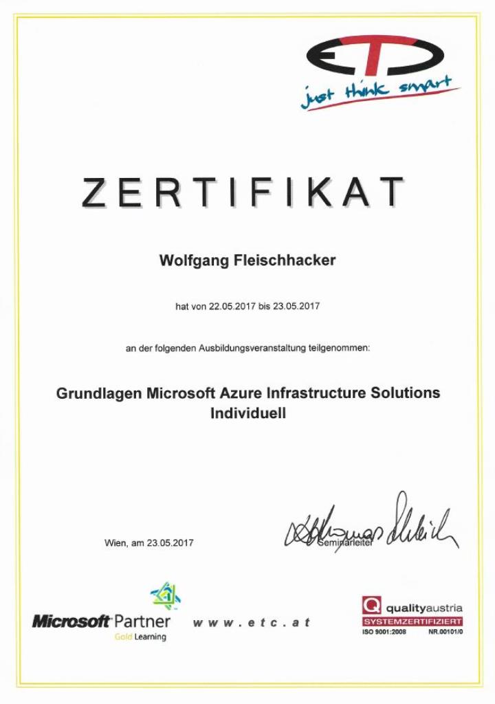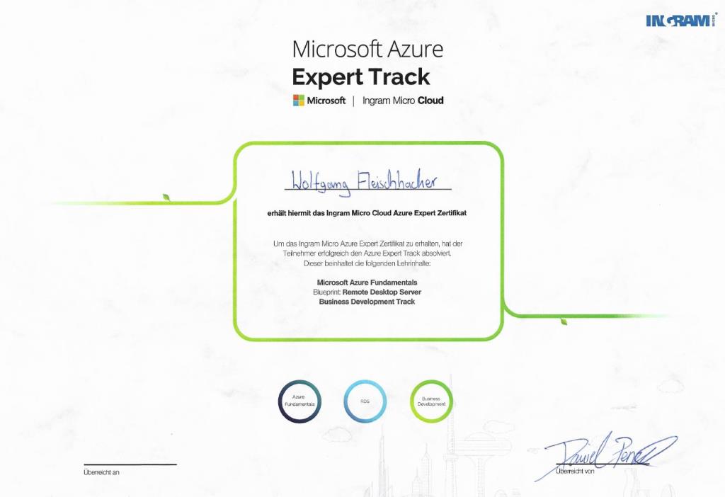 Um Sie perfekt beraten und betreuen zu können, hat sich Wolfgang Fleischhacker drei Tage lang im Bereich "Microsoft Azure" fortgebildet.